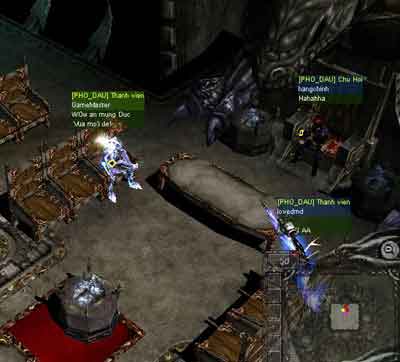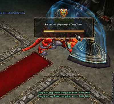 Khi ở trong lâu đài thành viên của hội công thành cần cử ra 2 người đến trấn giữ vị trí phong ấn đồng thời chủ hội cần nhanh chóng tiến đến bệ phong ấn .Trong khi chủ hội đang phong ấn, các thành viên phải bảo vệ chủ hội đến khi phong ấn xong. Nếu như trong lúc phong ấn chủ hội tử trận thì các bạn phải công thành lại từ đầu.Lưu ý là: Thời gian của việc công thành kéo dài 1 giờ. Vì vậy các bạn nên chọn thời điểm gần cuối Công Thành để phong ấn!![]() Hội nghị 'Diên Hồng' trước trận đấu! ![]() Đồ hoàng kim dùng để công thành ![]() Bắt đầu trận chiến rùi đây! Liệu có đi qua cửa dc không? ![]() 2 chiến binh đang xông vào phá Tượng ![]() Sau khi phá xong 3 bức tượng ở vòng ngoài! Bắt đầu bước vào lâu đài của Vua ![]() Vị trí cần phong ấn ![]() Chủ hội phe công thành bắt đầu phong ấn ![]() Phong ấn thành công! Đức vua mới lên ngôi! |